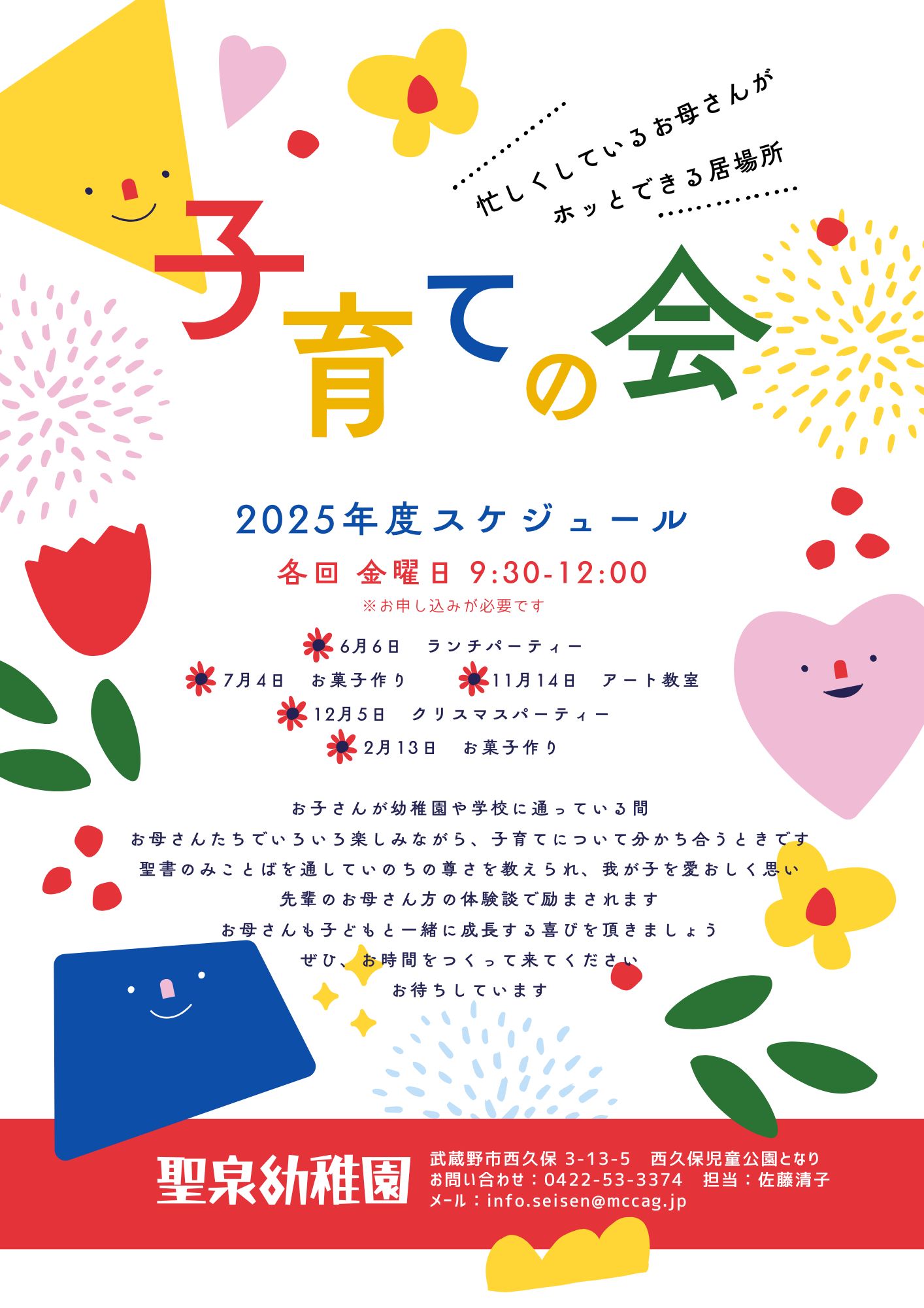 子どもたちが幼稚園に通っている間、お母さんたちで楽しい時間を持ちながら、子育てについて分かち合う場です。聖書の言葉を通して子育てのヒントをいただき、先輩のお母さんの体験談から励ましをもらったり··。和やかな雰囲気のなか、皆さんで楽しい時間を過ごしています。