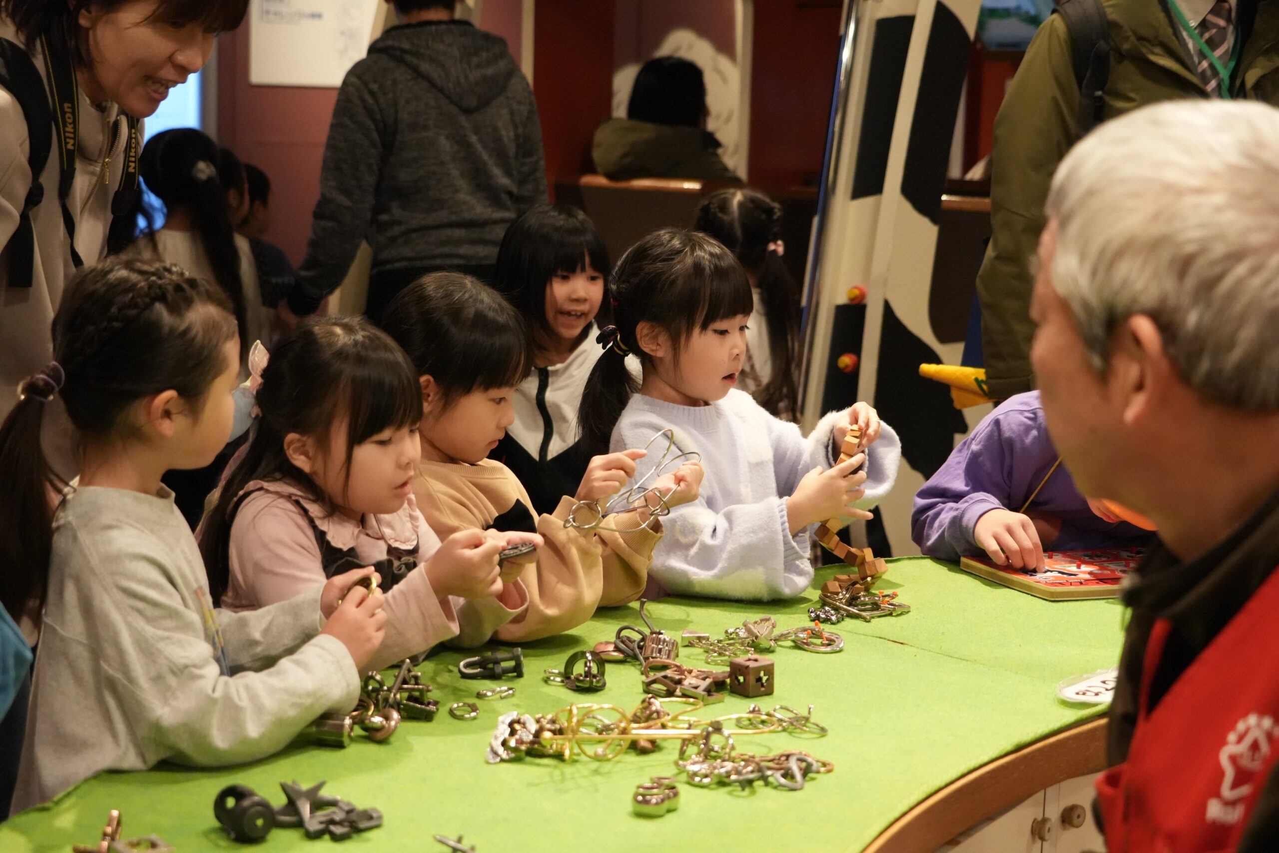 見て、聞いて、触って、子供たちは展示に興味津々!