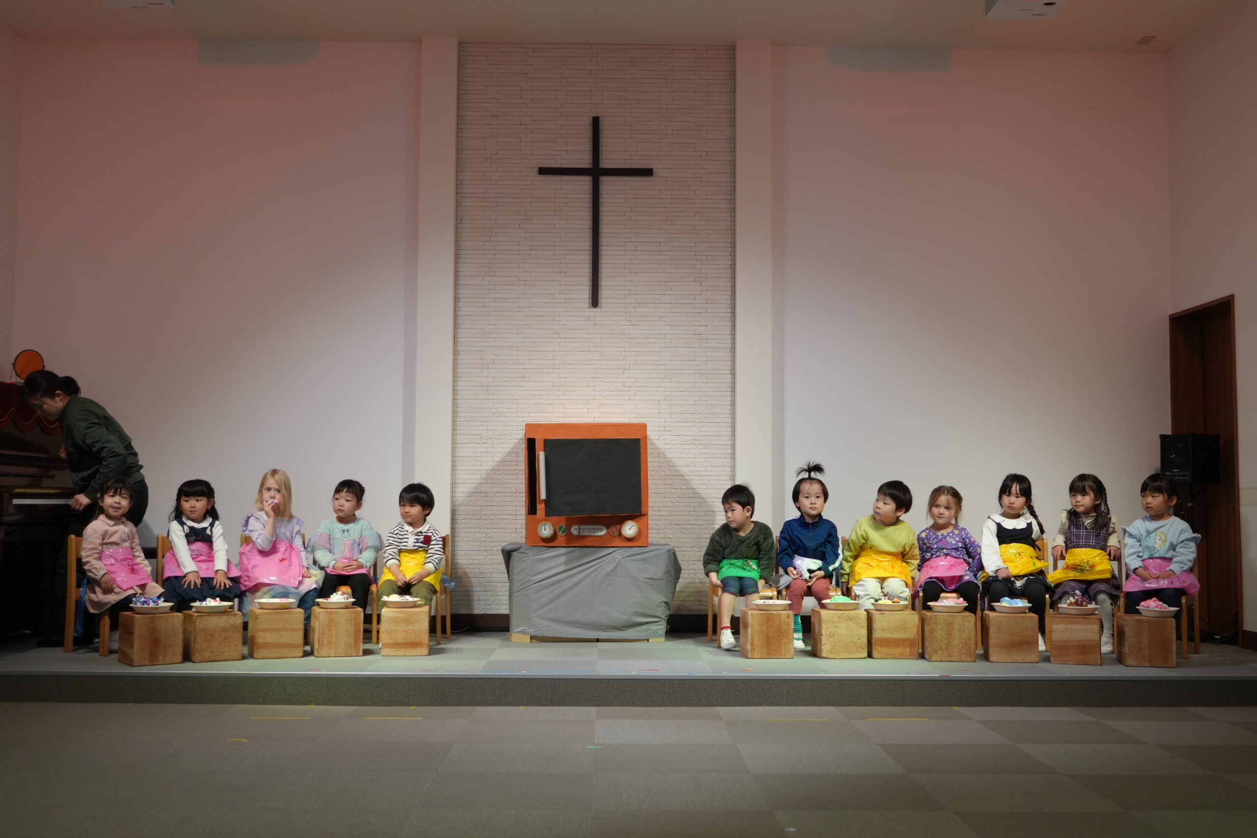 子どもたちは、自分たちと同じように赤ちゃんとして生まれてくださったイエスさまのお話に親しみながら、