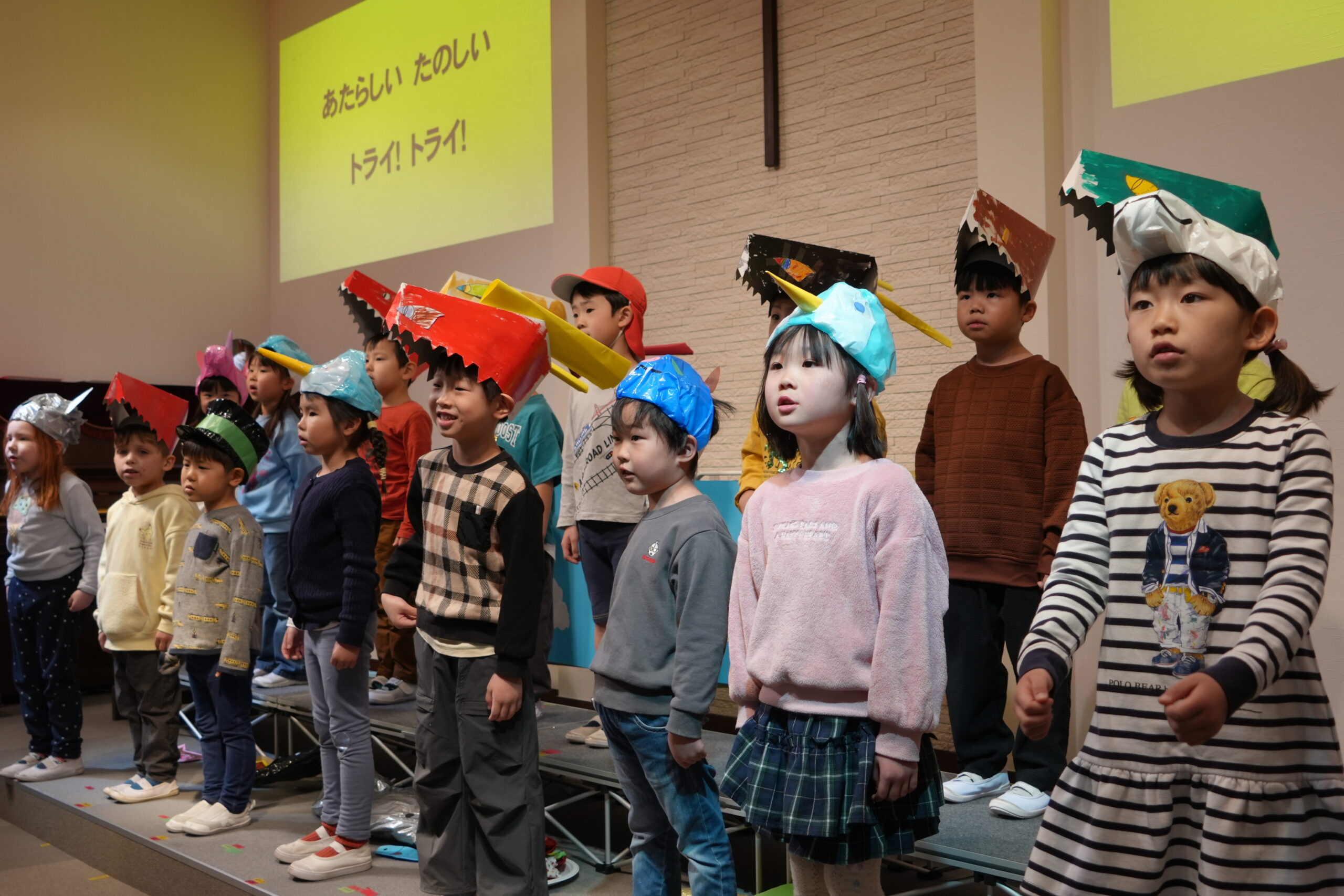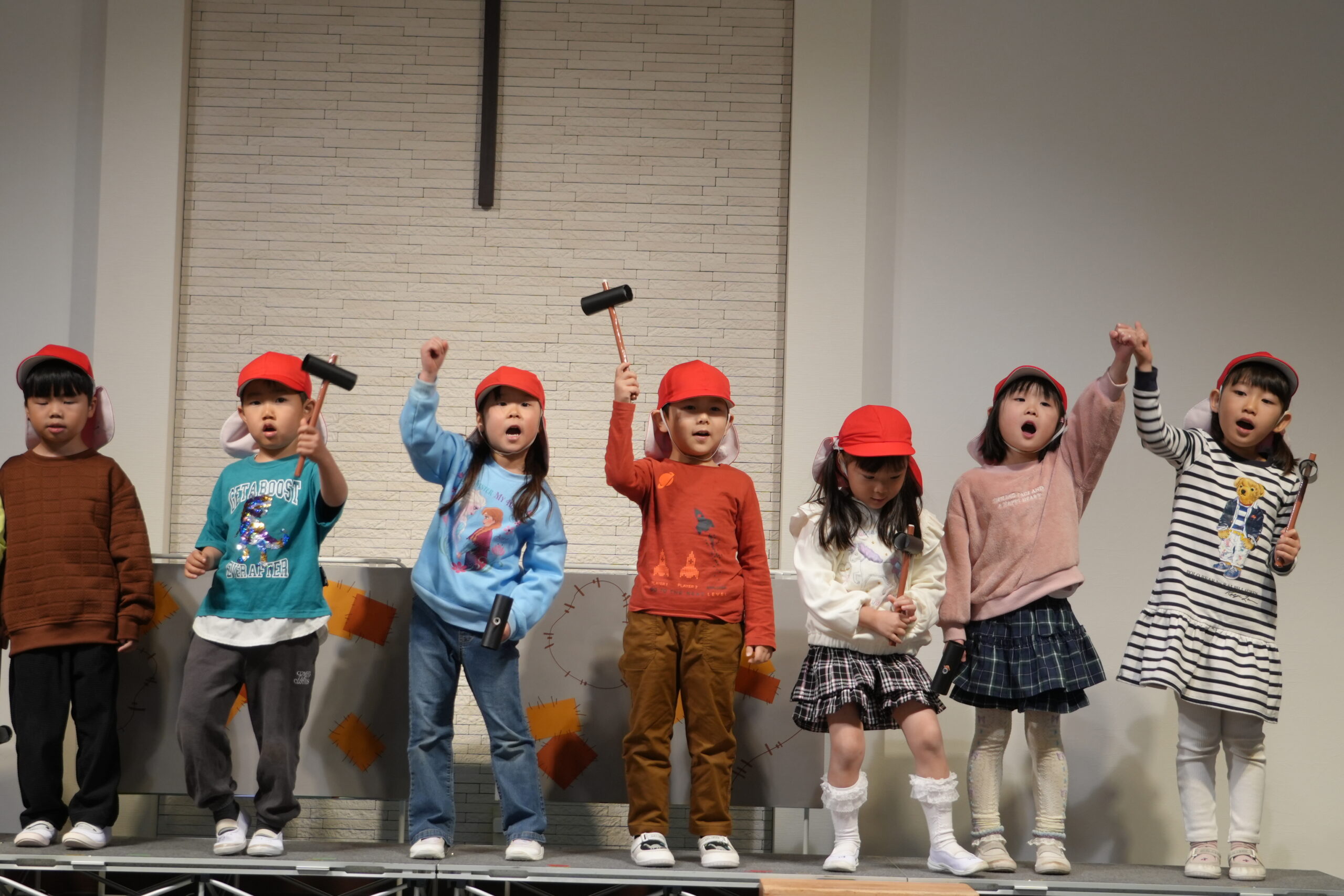 年少さんと年中さんは、絵本を題材にした劇を発表しました。 どの子も練習を頑張り、本番では可愛らしい姿を見せてくれました。 年長さんは自分の得意なことを発表しました。跳び箱を披露する子、 ピアノを演奏する子、ダンスや工作を発表する子。 子どもたちの成長が感じられる素敵な発表会でした。